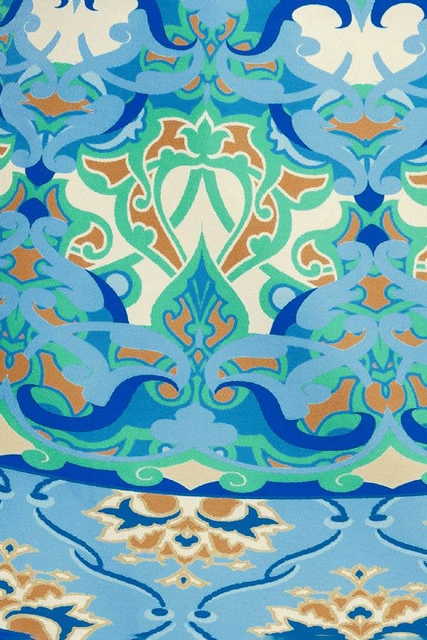 A printed woven skort with side zipper closure. Matching top IT12561-T
