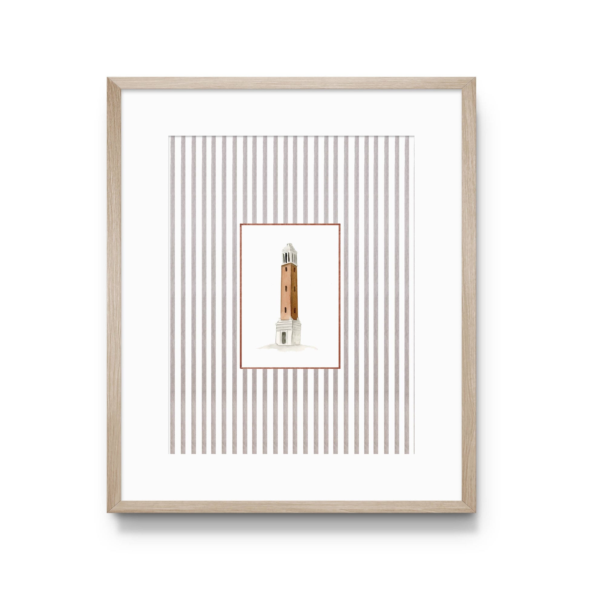 OFFICIALLY LICENSED BY THE UNIVERSITY OF ALABAMA Art print of Alabama's iconic Denny Chimes! * Choice of print size * Printed on 120 lb watercolor textured paper * Packaged in a cello sleeve with a backer board, branded sticker, and officially licensed holographic trademark sticker * Frame not included