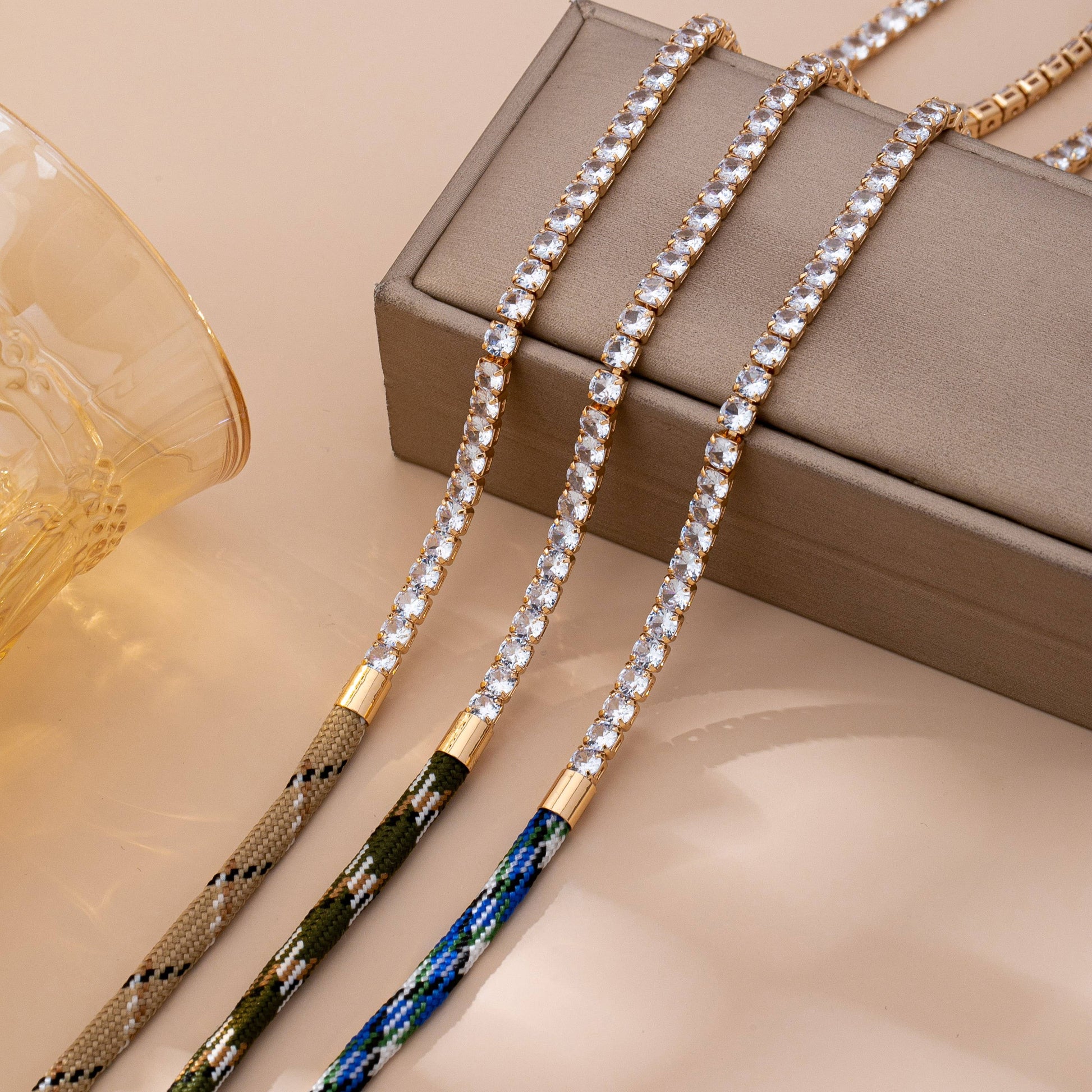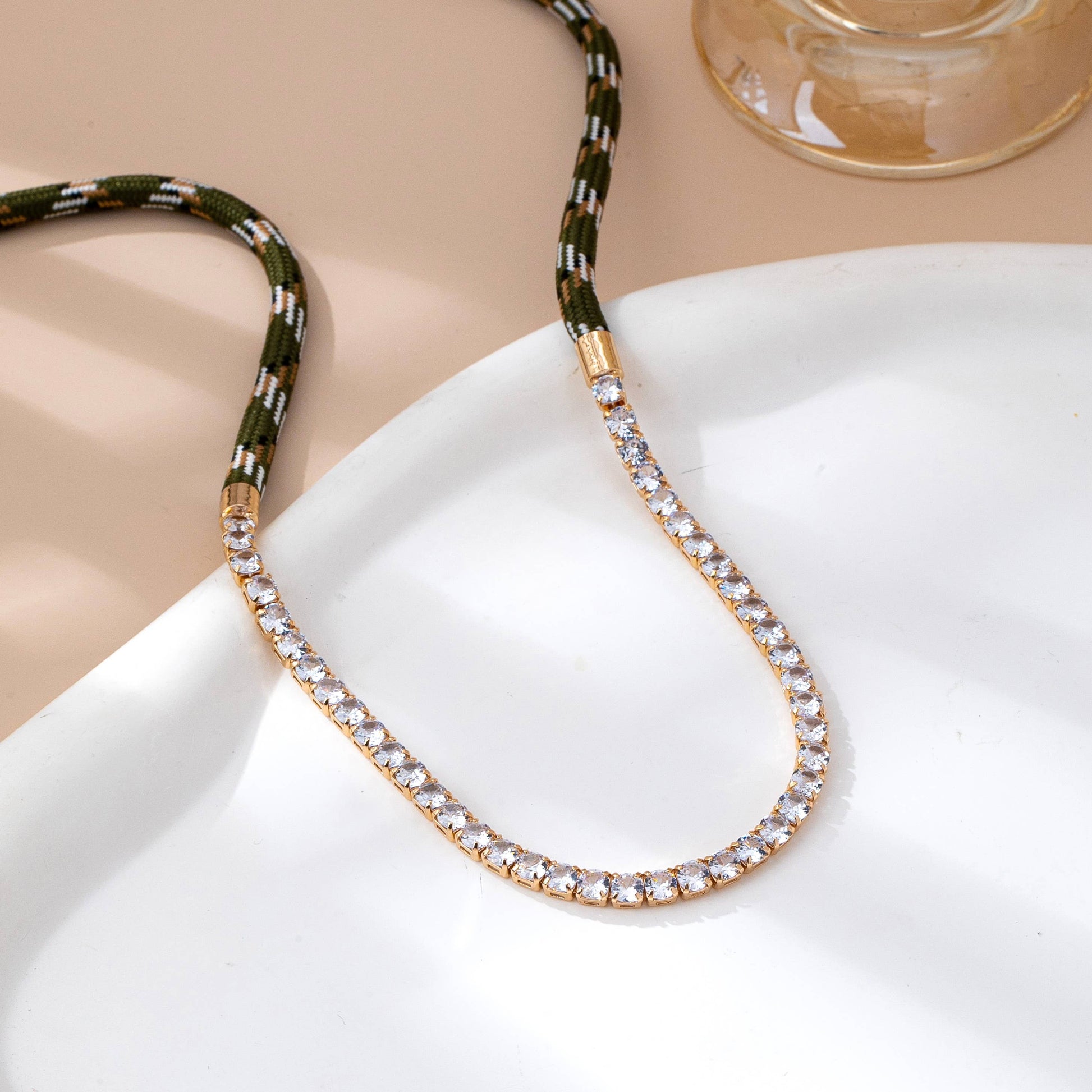 Infused with free-spirited charm, this boho-inspired necklace features a rhinestone and strung on a cord rope chain, blending earthy tones with artistic flair.