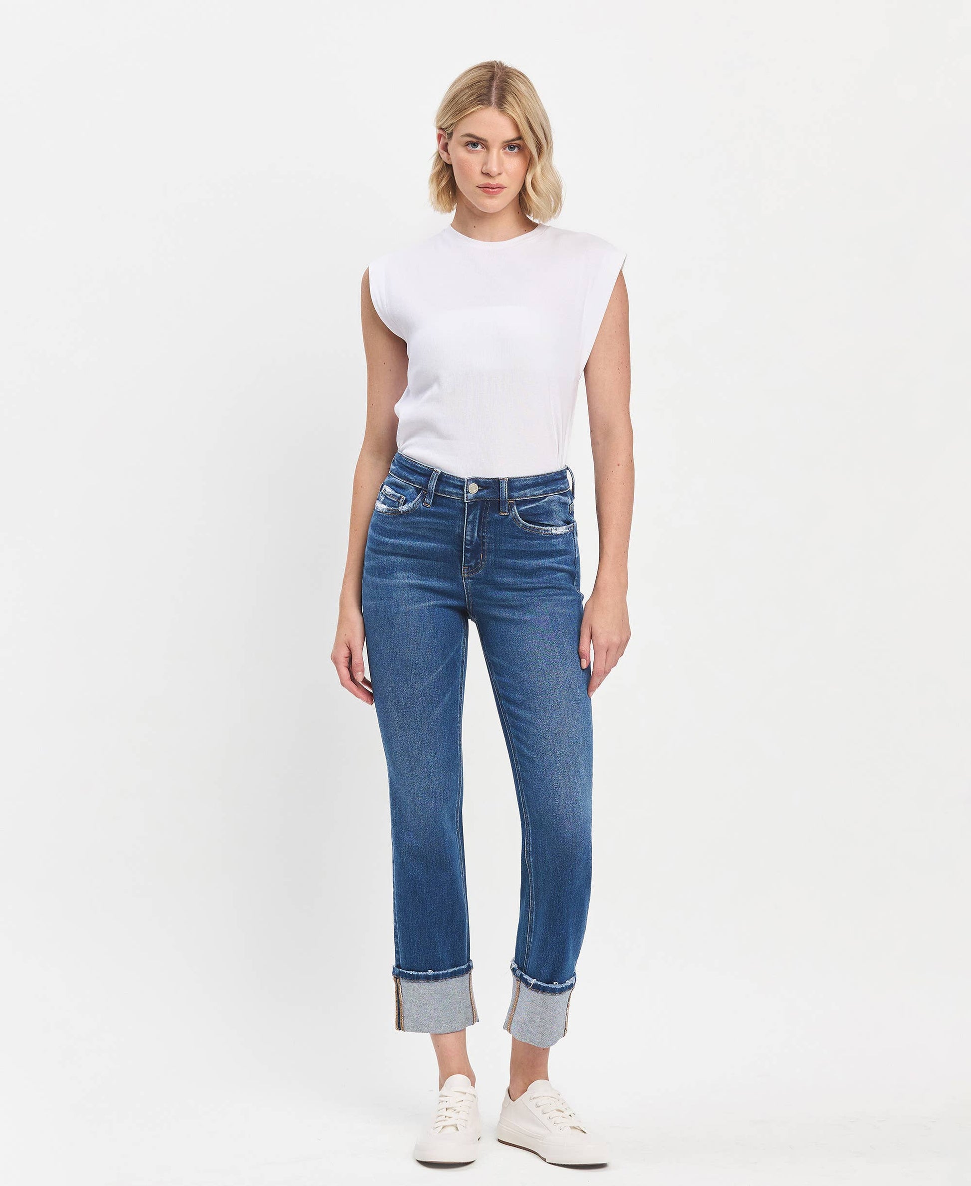 HIGH RISE CUFFED SLIM STRAIGHT JEANS