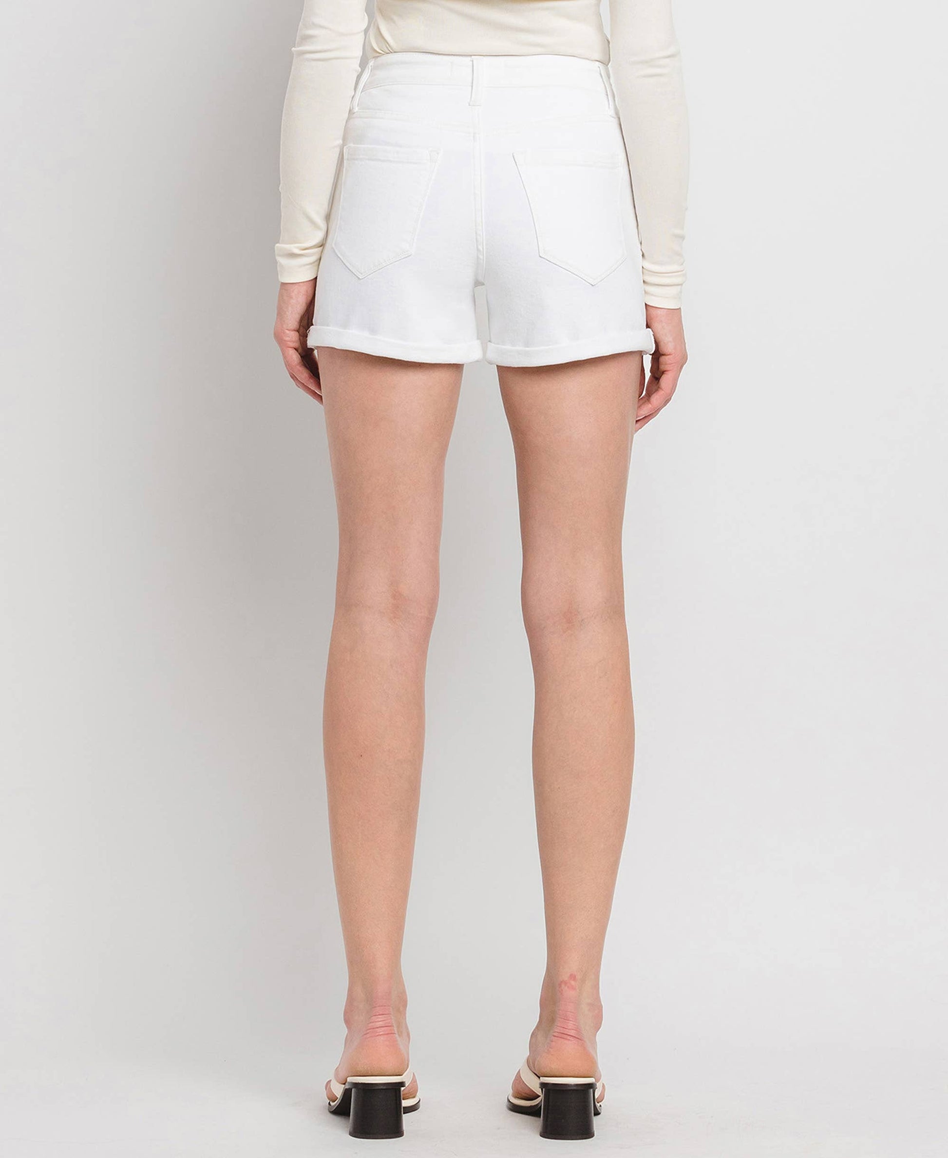 COMFORT STRETCH DENIM, HIGH RISE WAIST, DOUBLE CUFF HEM, DENIM SHORTS