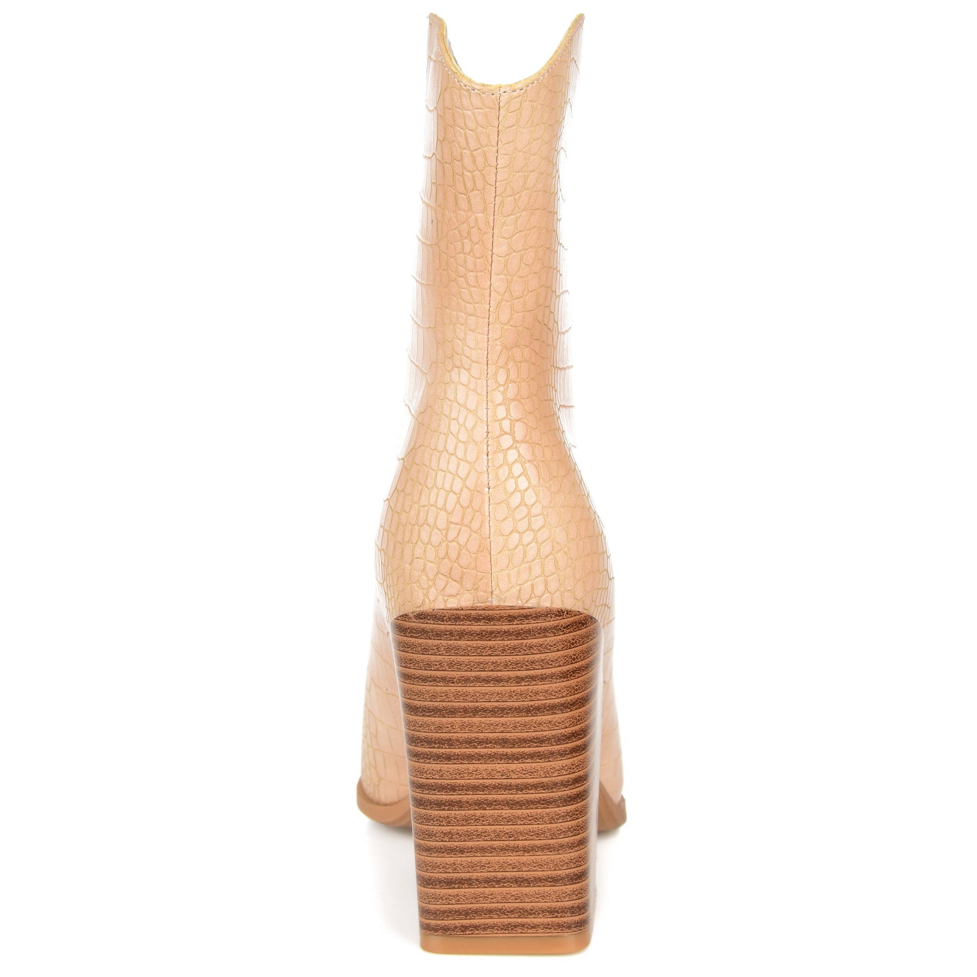 A western silhouette with a modern twist, the Brekinn by Journee Collection. Croc textured vegan leather and a square-toe shape this bold bootie. A 4mm Tru Comfort Foam™ insole adds the perfect amount of support, and a stacked heel finishes the statement. ♥Heel Height:3 1/2-inch ♥Heel Type: Stacked ♥Platform Height:Flat-inch ♥Shaft Height:5 inches ♥Top Circumference:12 inches ♥Shoe Width: Medium ♥Closure Type: Pull-on ♥Toe Style: Square ♥Lining: Fabric ♥Upper Material: Vegan Leather ♥Outersole Material: Man-made ♥Footbed: 4 MM Tru Comfort Foam™