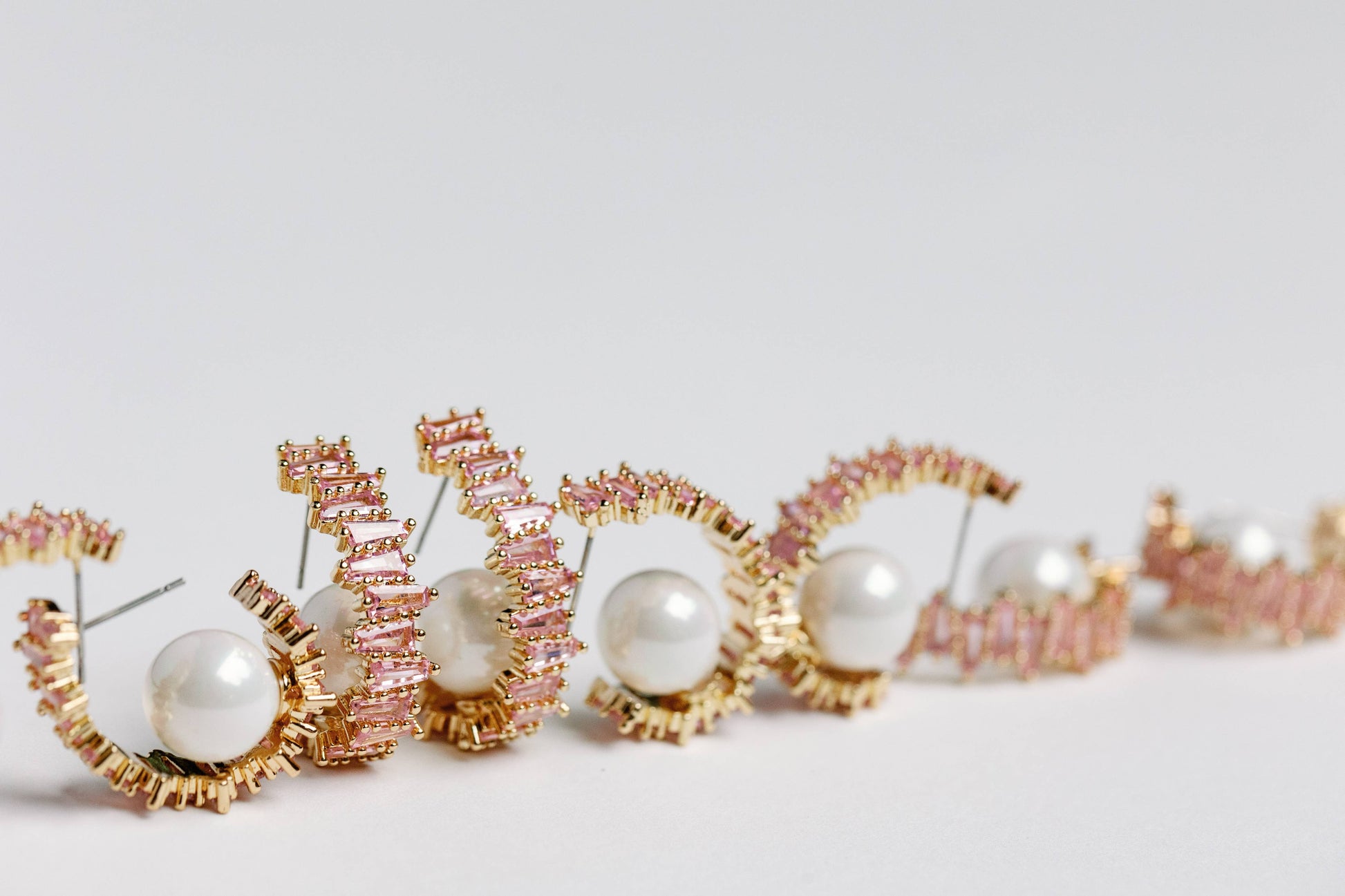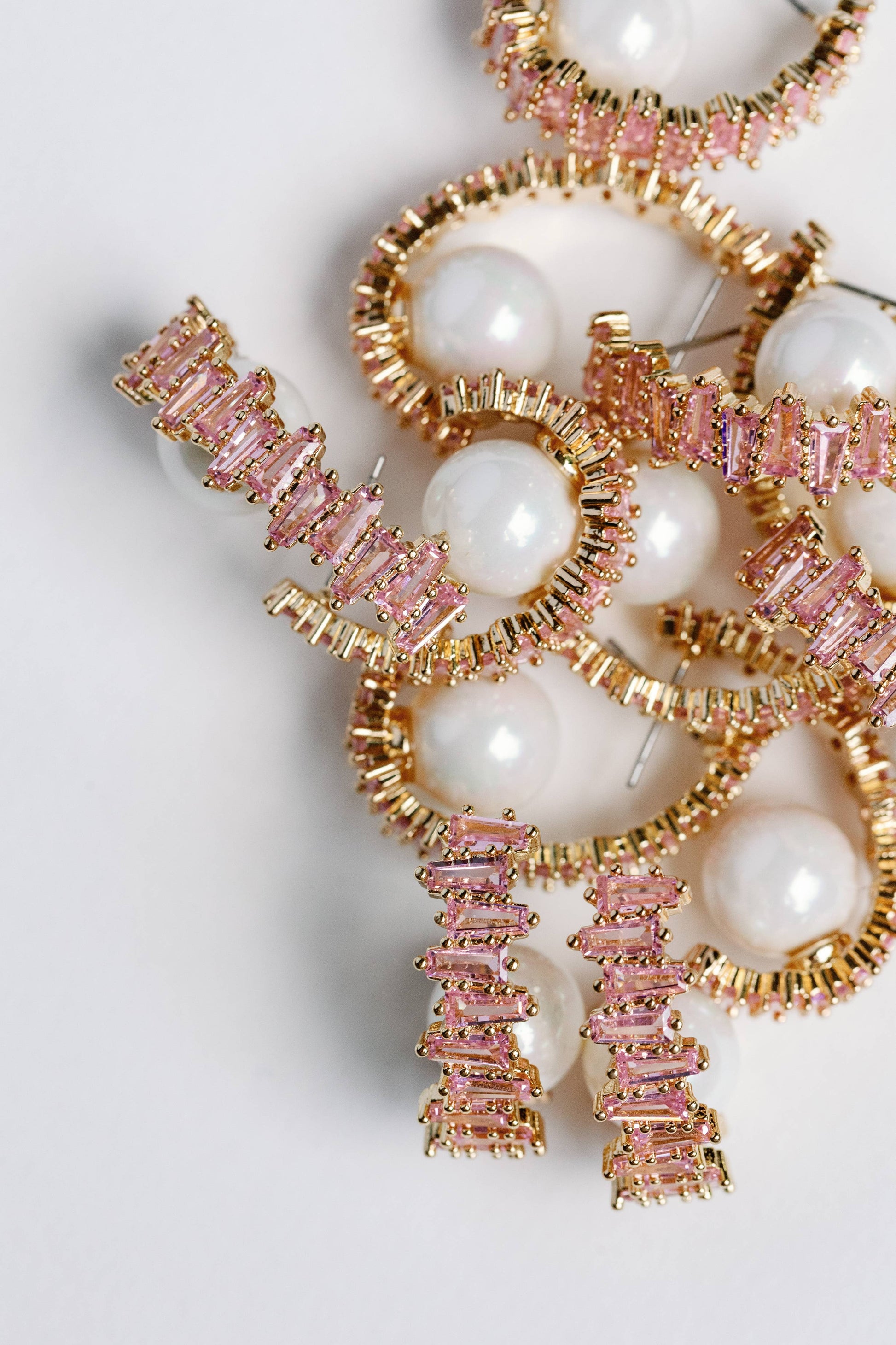 Pink Rhinestone and Pearl Statement Hoop Earrings