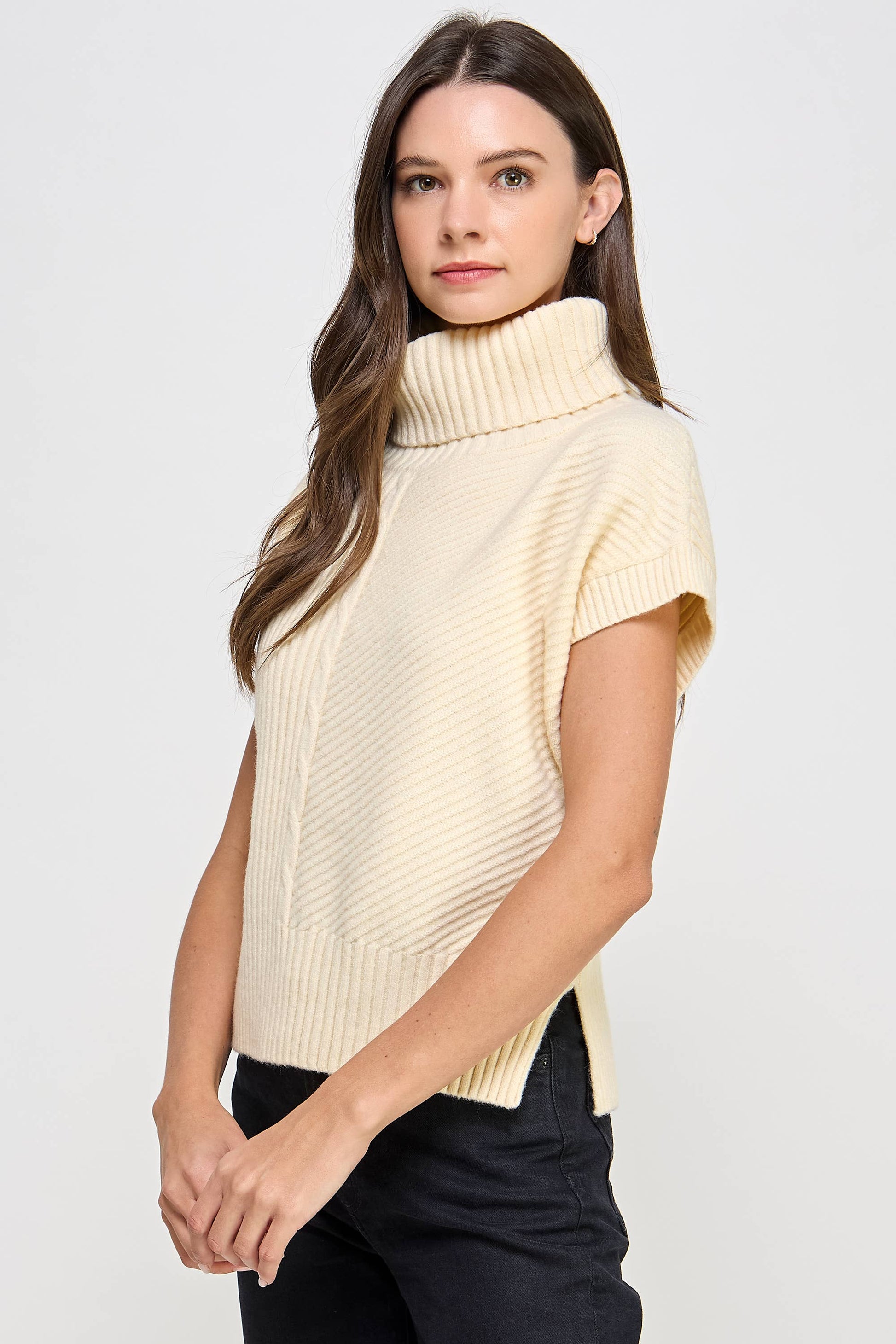 OUR TURTLE NECK SWEATER VEST IS A SEASON LAYERING STAPLE. THIS SWEATER VEST FEATURES A RELAXED FIT, DROPPED SHOULDERS AND TURTLE NECK. PERFECT FOR THROWING OVER A LONG-SLEEVE TOP, OR DRESS, OR WEARING UNDER A BLAZER OR TRENCH COAT.