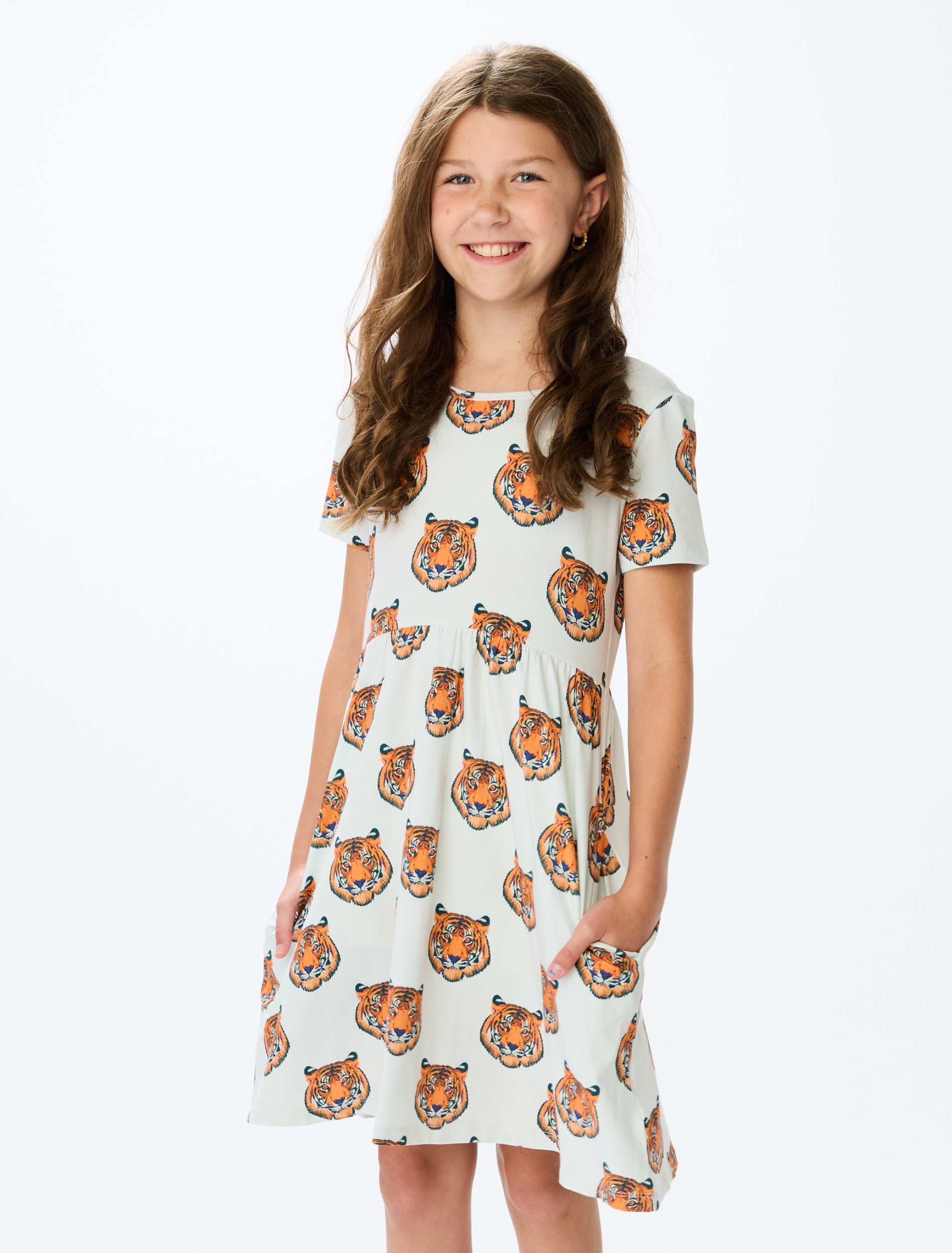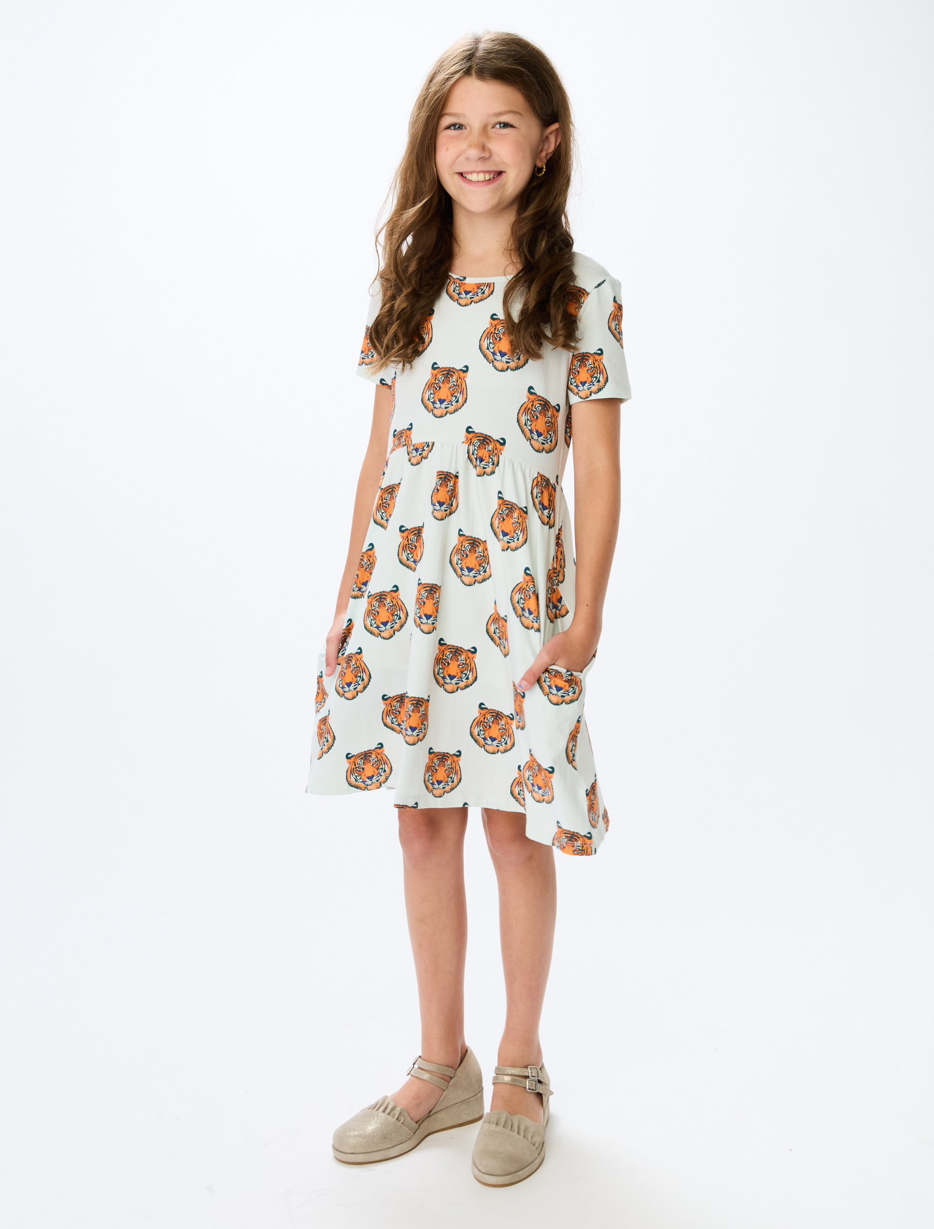 Details Made of stretch cotton and featuring pockets, your daughter will love this comfortable dress that can mix and match with our ladies’ styles. 94% pima cotton, 6 % lycra Sizing Model is wearing a size L Measurements XXS width: 11”, length: 21 3/4” XS width: 11 3/4”, length: 23 3/4” S width: 12 1/2”, length: 26” M width: 13 1/2”, length: 28 1/4” L width: 14 1/2”, length: 30 3/4” XL width: 15 1/2”, length: 34 1/4” Width measurements indicate the chest width from side to side. Length measurements indicate the length from high point shoulder to hem.