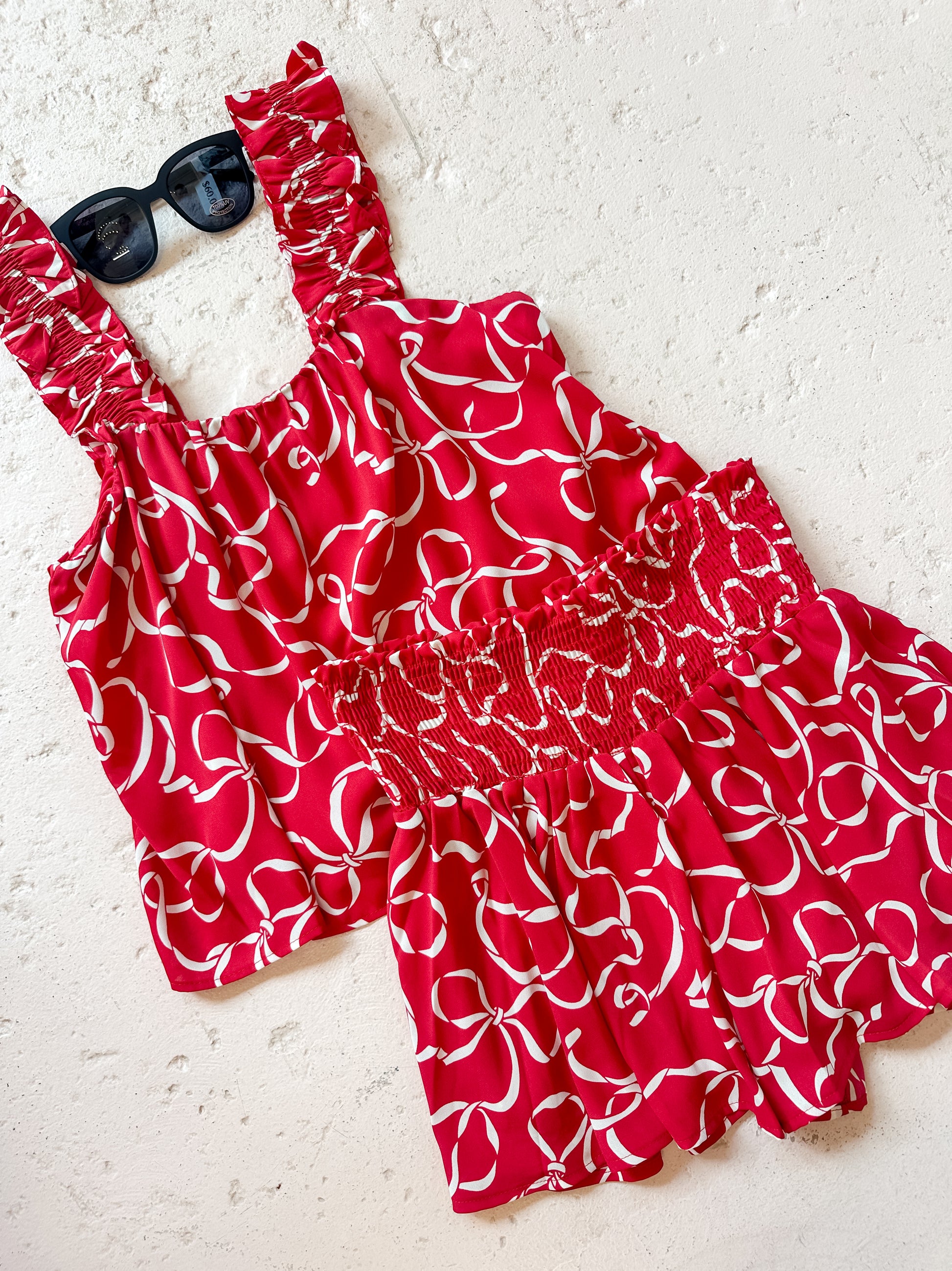 RUFFLE SHIRRED ELASTIC STRAP SWING TANK